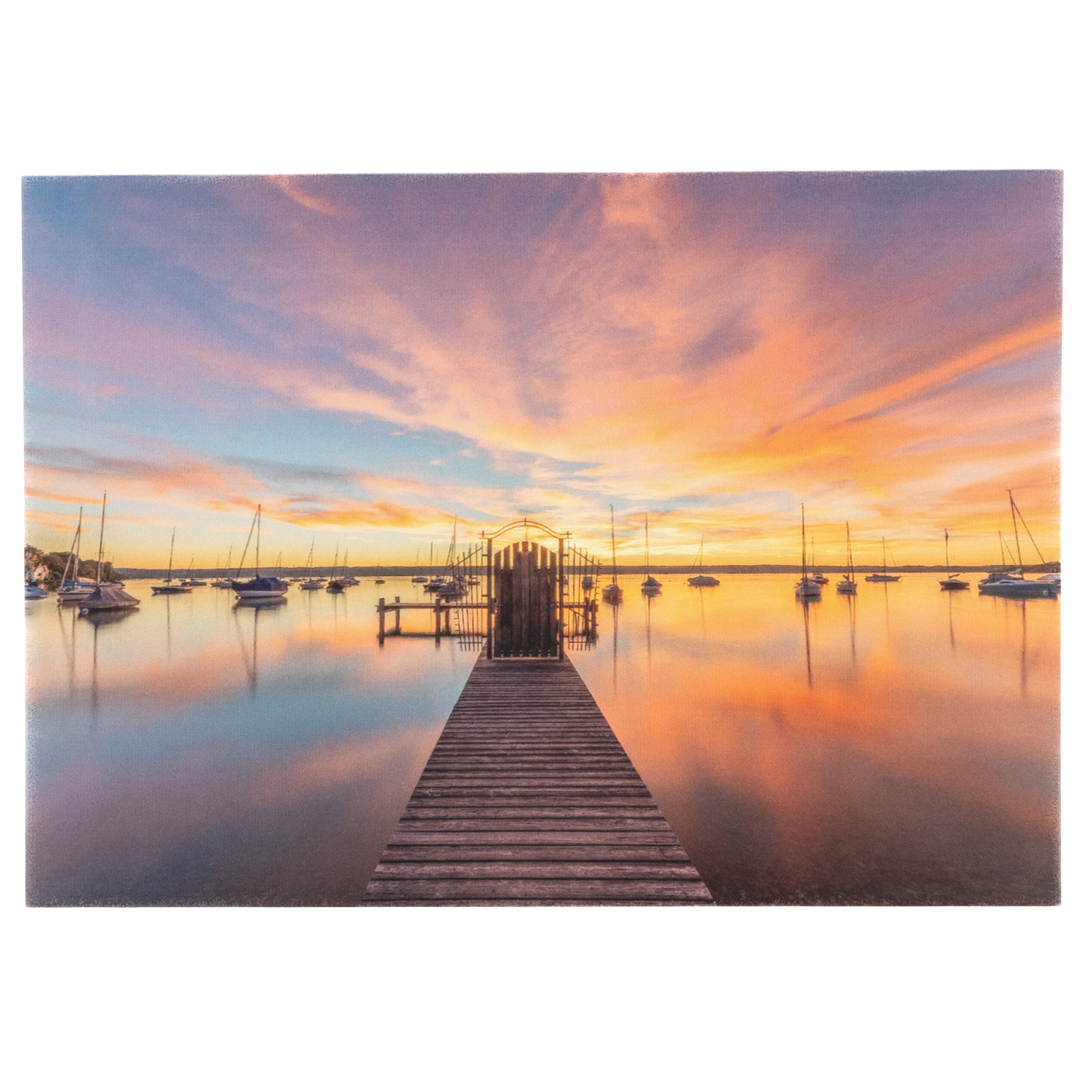 Wie ein Feuerwerk explodiert die Farbenpracht des Himmels an der Herrschinger Promenade.