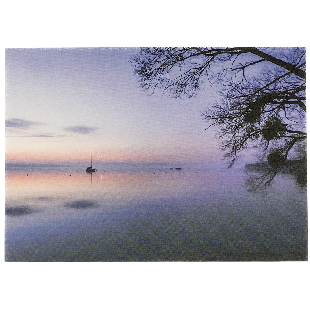 Rot scheint der Mond und die Dämmerung gibt dem See eine violette Färbung